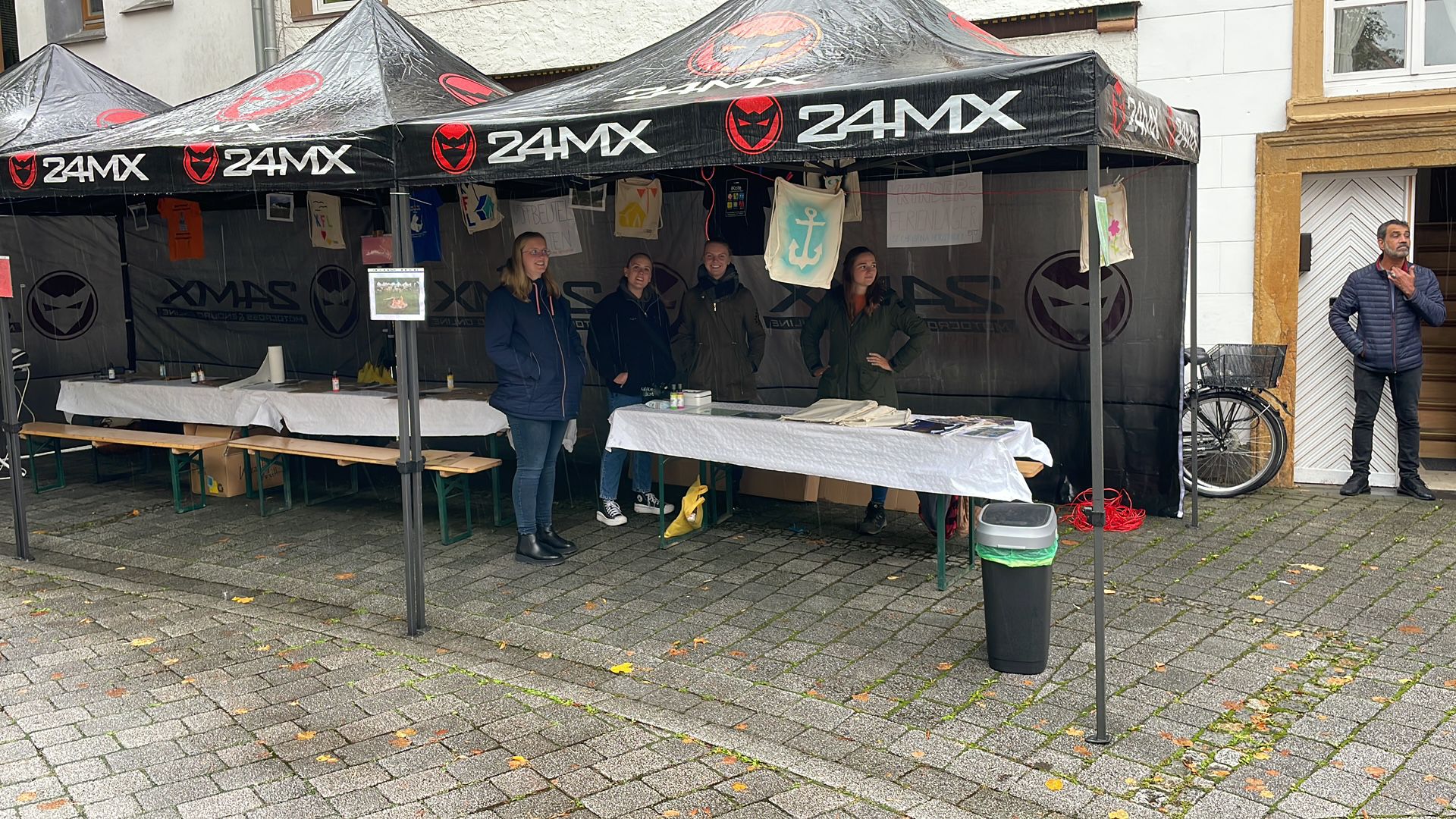 Trotz des schlechten Wetters, konnten verschiedenste Besucherinnen und Besucher bei uns am Stand ihren eigenen Jutebeutel gestalten. Mit verschiedenen Sprühfarben und Schablonen konnten die unterschiedlichsten Muster erzeugt werden. Nach dem Trocknen und einer kurzen Bügeleinheit, konnten die eigenen Rucksäcke mit nach Hause genommen werden. Neben der Bastelaktion war dem B-Team auch der Austausch mit den Bürgerinnen und Bürger aus Herzebrock und Umgebung wichtig.