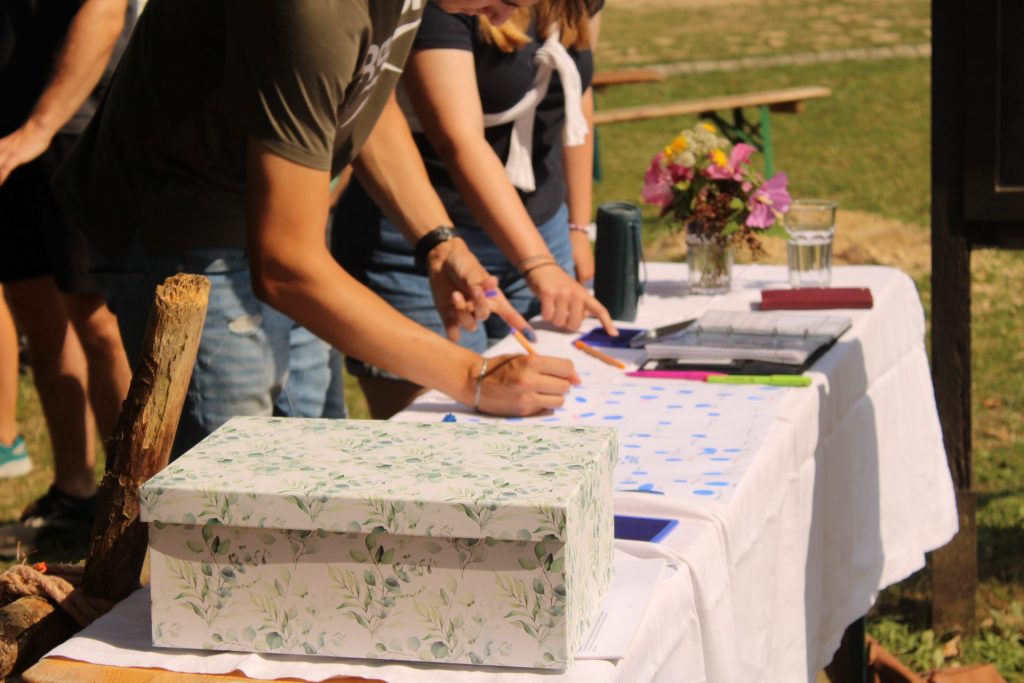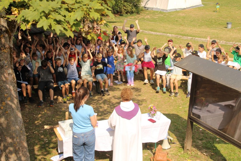 Der Samstagmorgen verlief wieder ohne Zwischenfälle. So stand nach dem Wimpel hissen und einem guten Frühstück die Lagermesse zum Thema „Du bist einzigartig!“ auf dem Plan.