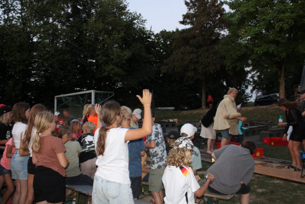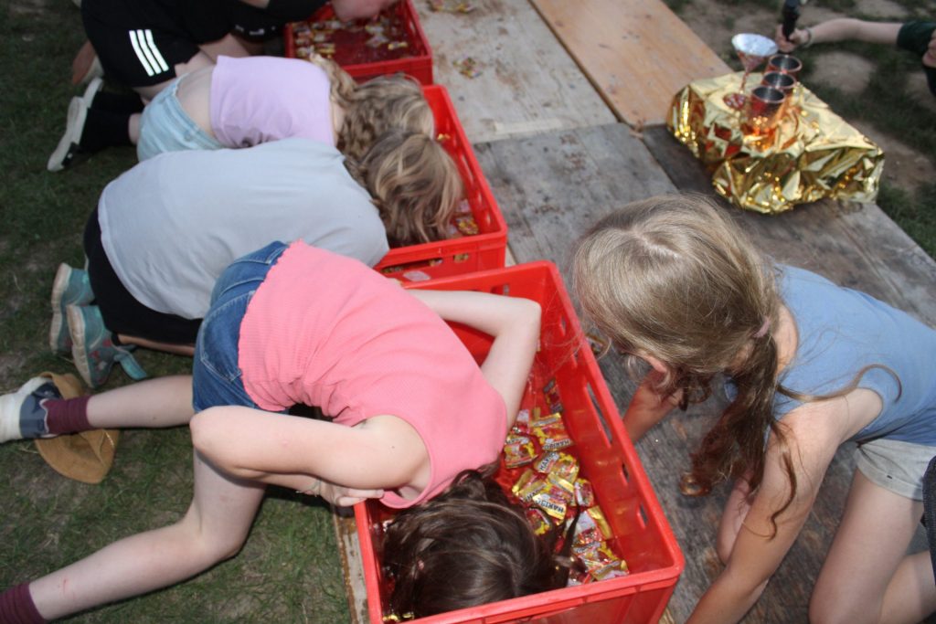 Wie es sich für einen guten Samstagabend um 20:15 Uhr gehört, fand „Wetten, dass..?“ direkt live bei uns auf dem Zeltplatz statt. Es hieß also: „Top, die Wette gilt!“, und Koten und Betreuer duellierten sich in verschiedensten Disziplinen. Moderiert wurde wie immer von Thomas und Michelle.